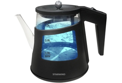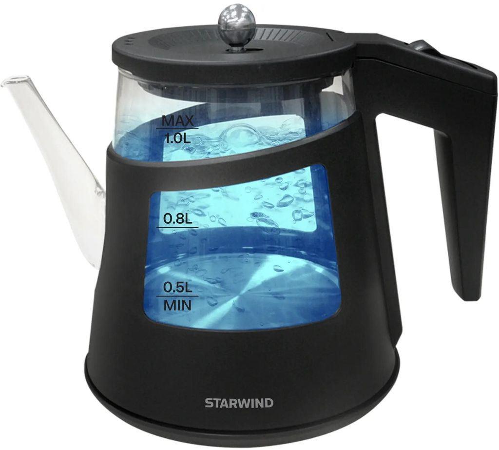 STARWIND Чайник электрический SKG2113, 1000Вт, черный и прозрачный