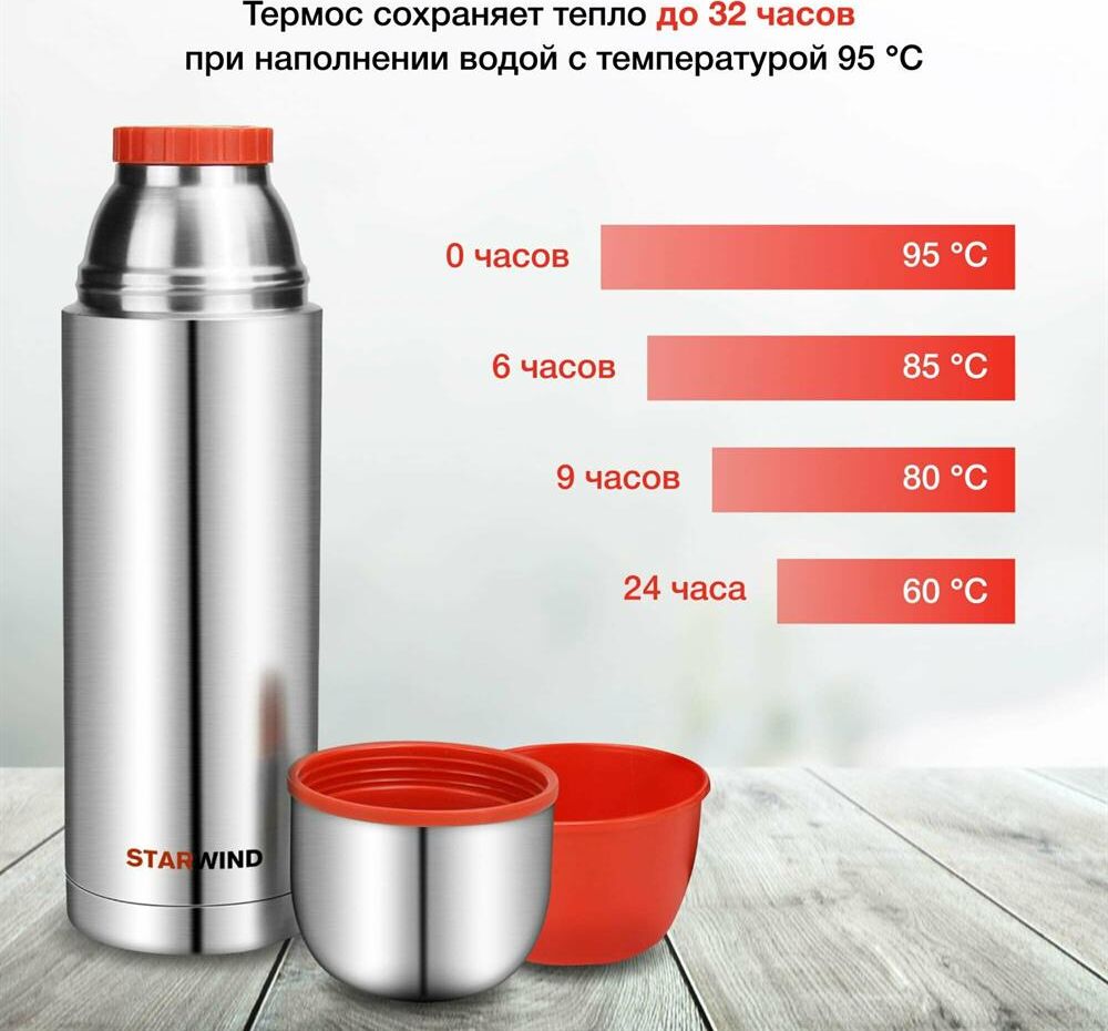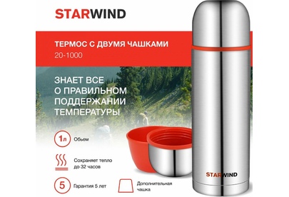 STARWIND Термос 20-1000, 1л, серебристый/ красный