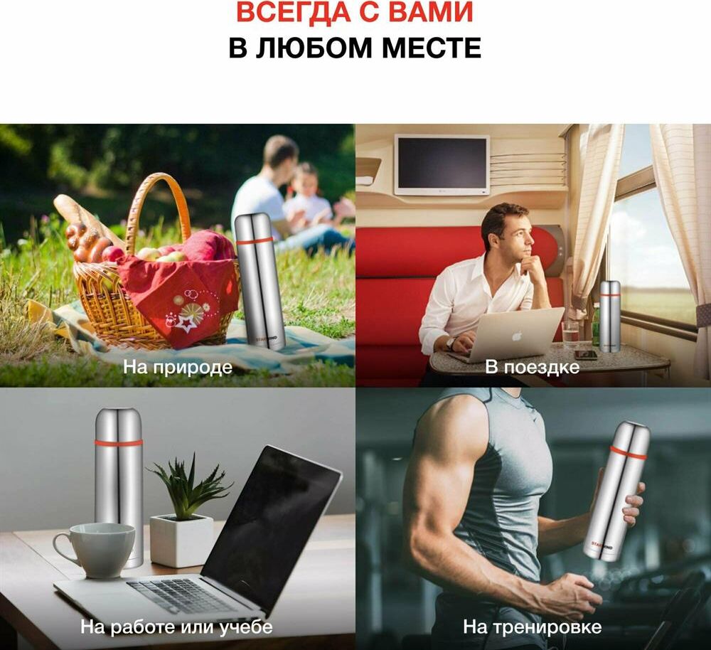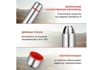 Тип: Термос. Объем: 1. Материал корпуса: нержавеющая сталь. Материал колбы: нержавеющая сталь. Тип пробки: винтовая. Тип горловины: узкая. Чехол в комплекте: отсутствует. Крышка-чашка: есть. Количество крышек-чашек: 2. Вес: 575. Тип упаковки: картонная коробка. Время удержания тепла: 32. Габариты упаковки (ед) ДхШхВ: 0.099x0.095x0.298. Вес упаковки (ед): 0.68. Гарантия: 60 мес.. Размеры: 95 х 299 х 95 мм. Цвет: серебристый/красный. Объем: 1 л. Тип горловины: узкая. Тип пробки: винтовая. Особенности: крышка-чашка. Материал корпуса: нержавеющая сталь. Размеры: 95 х 299 х 95 мм. Время удержания тепла: 32 ч
