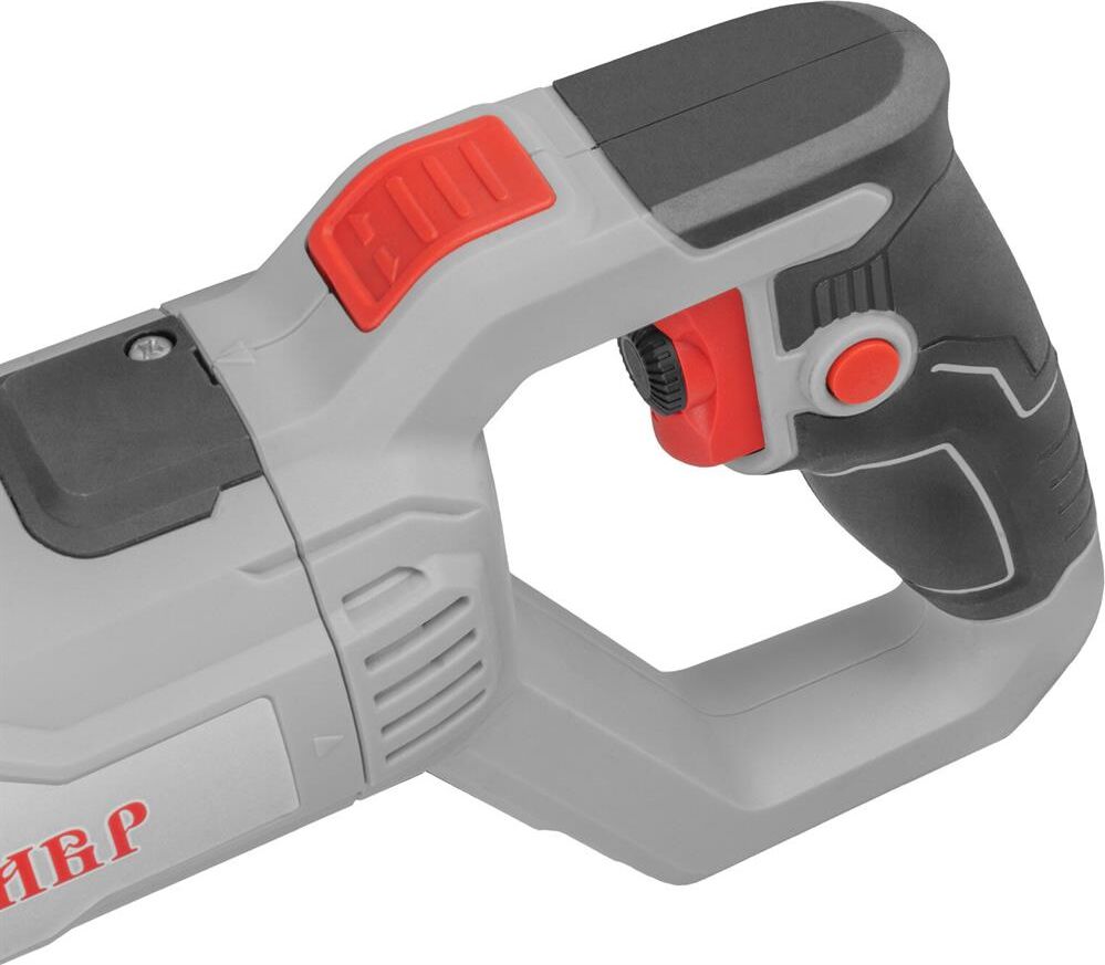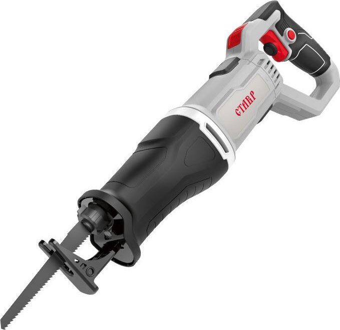 Ставр ПС-1200Р Пила сабельная 1200 Вт, 0-2800 ход/мин, ход пильного полотна 29мм, поворотная рукоятка, регулировка оборотов, быстрозажимной патрон, бесключевая регулировка длины опоры, быстрая замена щеток, кабель 3м
