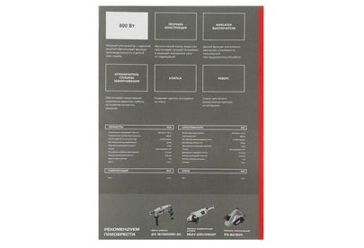 Потребляемая мощность, Вт 800. Напряжение сети / Частота, В/Гц 220В±10% / 50Гц. Число оборотов на холостом ходу, об/мин 0-4000. Максимальный крутящий момент, Нм 28. Регулировка глубины завинчивания 0-13 мм. Максимальный диаметр самореза, мм 8. Диаметр зажима, мм 6,35. Длина сетевого кабеля, м 3. Гарантийный срок 3 года. Габаритные размеры, мм 300х190х72. Масса, кг 1,5. Комплект поставки бита 2 шт.