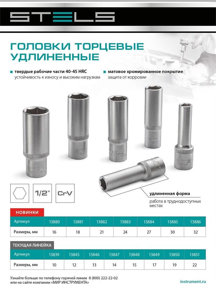 6-гранная торцевая головка Stels 13827 из стали CrV, размером 16 мм, под квадрат 1/2 дюйма, используется для работ с болтовыми соединениями. Динамический профиль с увеличенной площадью соприкосновения с крепежом сводит к минимуму риск повреждения граней болтов, гаек и других метизов. Головка пригодится для проведения ремонтных работ в мастерской, на даче и дома, а также для обслуживания автомобилей на СТО и в гараже.ПреимуществаПрочность — головка изготовлена из высококачественной стали хромованадиевой группы.Износостойкость — рабочая часть закалена до твердости 42 HRC, поэтому выдерживает интенсивные нагрузки.Защита от коррозии — матовое хромовое покрытие предотвращает разрушение головки под воздействием влаги.Комфортное использование — головка со специальными насечками на корпусе не выскальзывает из рук.