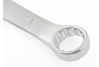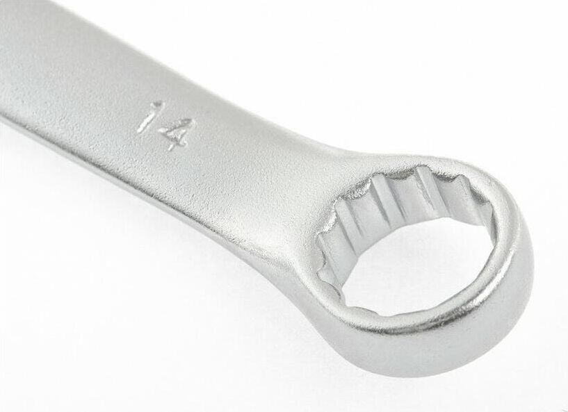 Комбинированный ключ Stels 15211 из стали CrV, 14 мм, покрытый матовым хромом, используется для закручивания и откручивания гаечных и болтовых соединений. Накидная головка имеет 12-гранную внутреннюю поверхность, что облегчает работу с крепежом и уменьшает опасность его повреждения. Ключ применяется в слесарных мастерских и автосервисах, а также будет полезен для решения бытовых задач.ПреимуществаВысокий показатель прочности — ключ изготовлен из стали хромованадиевой группы, рабочая часть закалена до твердости 45 HRC.Матовое хромоникелевое покрытие — инструмент защищен от образования коррозии.Комфорт при монтаже в труднодоступных местах — кольцевой зев наклонен под углом в 15 градусов к плоскости ключа.