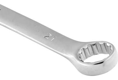 Комбинированный ключ Stels 15225 из стали CrV, 21 мм, покрытый матовым хромом, используется для закручивания и откручивания гаечных и болтовых соединений. Накидная головка имеет 12-гранную внутреннюю поверхность, что облегчает работу с крепежом и уменьшает опасность его повреждения. Ключ применяется в слесарных мастерских и автосервисах, а также будет полезен для решения бытовых задач.ПреимуществаВысокий показатель прочности — ключ изготовлен из стали хромованадиевой группы, рабочая часть закалена до твердости 45 HRC.Матовое хромоникелевое покрытие — инструмент защищен от образования коррозии.Комфорт при монтаже в труднодоступных местах — кольцевой зев наклонен под углом в 15 градусов к плоскости ключа.