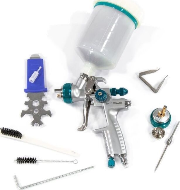 Краскораспылитель STELS системы LVMP (Low Volume Middle Pressure – «низкий объем, среднее давление» , с верхним бачком предназначен для нанесения декоративных, покрытий на различные поверхности. Корпус краскораспылителя имеет защитное покрытие из полированного хрома. Объем бачка 600 мл. Расход материала 165-220 мл/мин. Максимальное давление 2,5 бар. Диаметр пневморазъема 1/4 . В комплекте поставляется дополнительный дюзовый набор D 1,1 мм, универсальный ключ и ершик для чистки.
