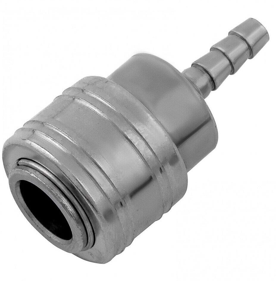Универсальная быстросъемная муфта Stels 57052 типа «мама» предназначена для присоединения краскораспылителя, нейлера, продувочного пистолета и других пневмоинструментов к компрессору через шланг диаметром 6 мм. Соединение Рапид (Евро) обеспечивает простую стыковку с инструментом, а штуцер «елочка» — со шлангом.Преимущества:Конструкция соединения отличается герметичностью, что исключает потери сжатого воздуха.Материал изготовления — сталь, поэтому муфта устойчива к повреждениям и износу.Комплект поставки включает две муфты.