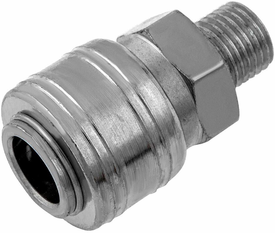 Универсальная быстросъемная муфта Stels 57051 типа «мама» соединяет выходное отверстие компрессора с пневматическим шлангом для осуществления ремонтных и строительных работ с помощью пневмоинструмента. Диаметр наружной резьбы составляет 1/4 ".Преимущества:Высокопрочная сталь обеспечивает надежность соединений и долговечность эксплуатации.Благодаря герметичному соединению муфта помогает избежать падения производительности.Комплект поставки включает 2 муфты.