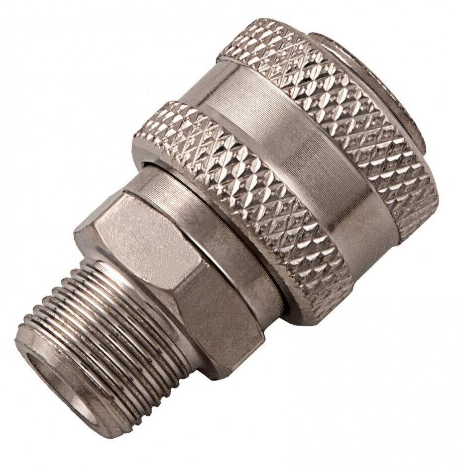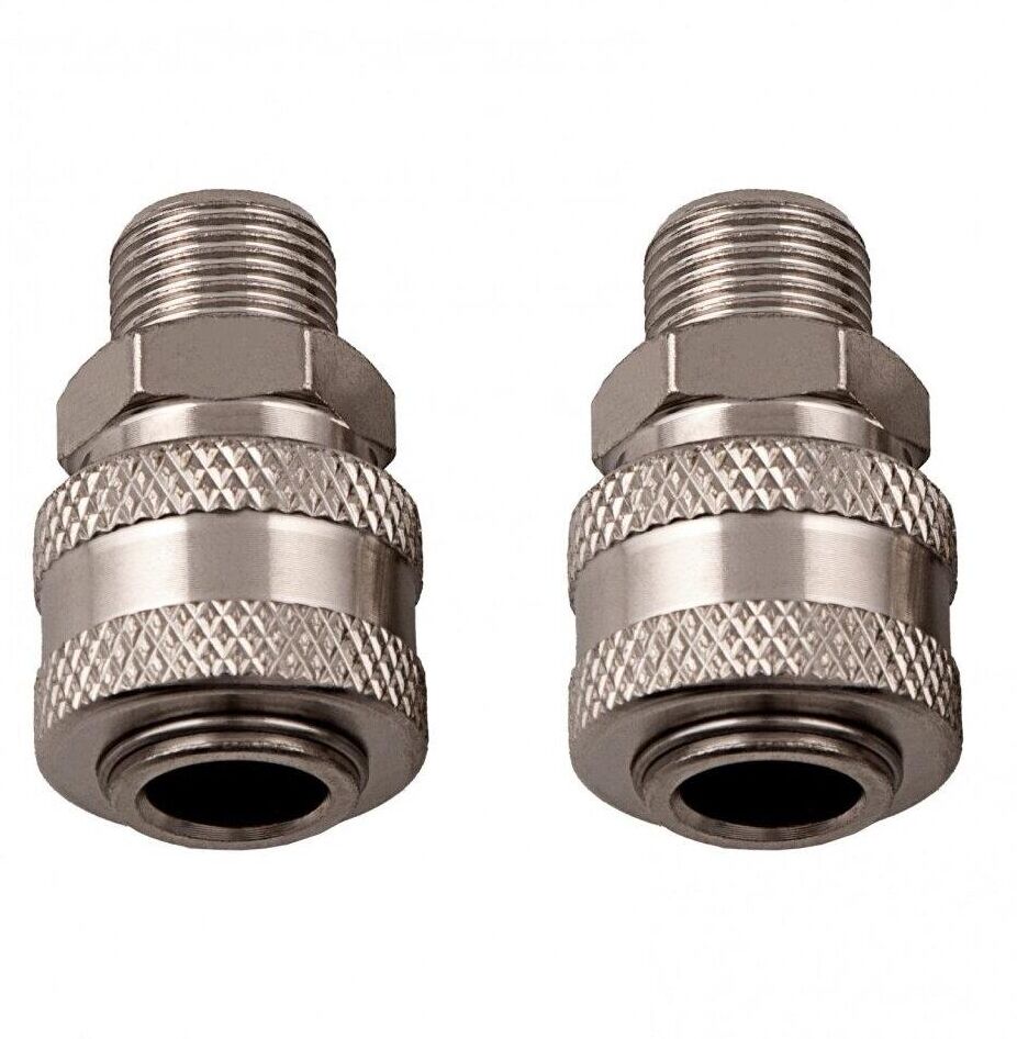Универсальная быстросъемная муфта «мама» с внешней резьбой 3/8 " используется в качестве соединяющего элемента при сборке пневматической системы. Подключение инструмента к компрессору через воздушный шланг занимает несколько секунд, с ним справится даже новичок.Преимущества:Стальная конструкция гарантирует безопасную эксплуатацию, поэтому прослужит долго.Защита от протечек воздуха позволяет добиться стабильно высокой производительности пневмоинструмента.В комплект поставки включены 2 муфты.