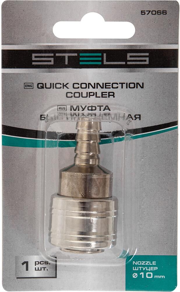 STELS Муфта универсальная быстросъемная ("мама") со штуцером "елка" под шланг 10 мм, 1 шт, 57066
