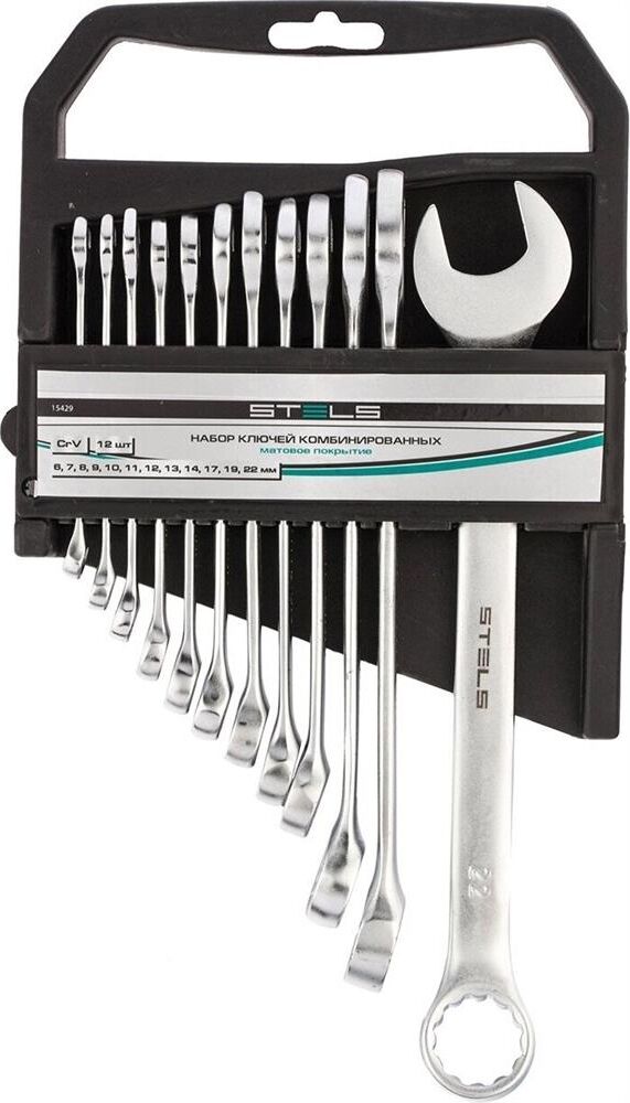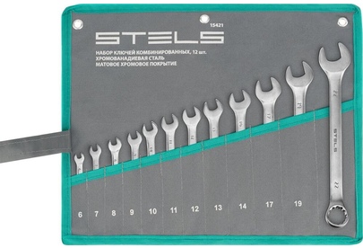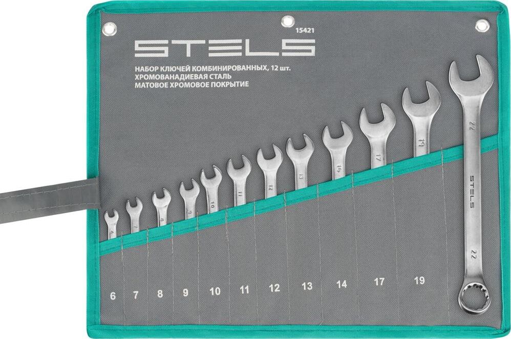 STELS Набор ключей комбинированных 6-22 мм, 12 шт, CrV, матовый хром 15421