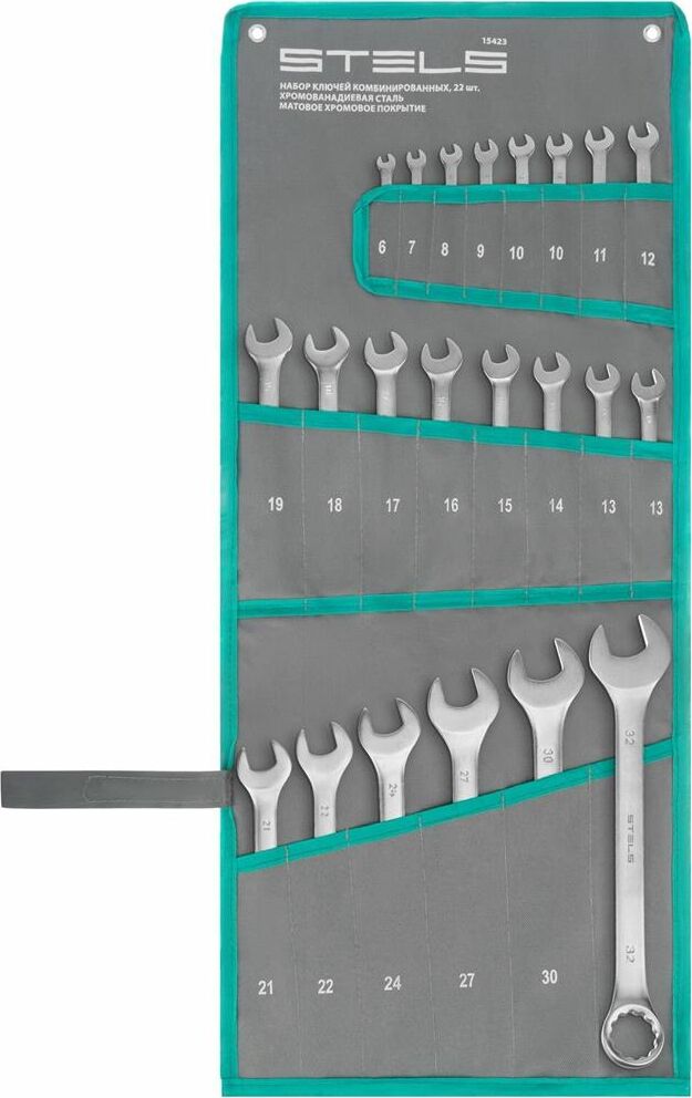 STELS Набор ключей комбинированных 6-32 мм, 22 шт, CrV, матовый хром 15423