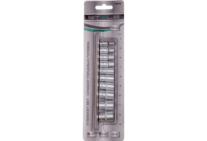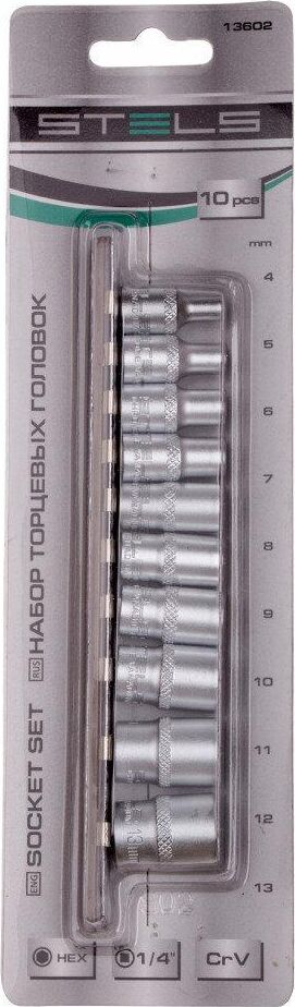 STELS Набор торцевых головок, 1/4, шестигранные, CrV, 10 шт, 4-13 мм 13602