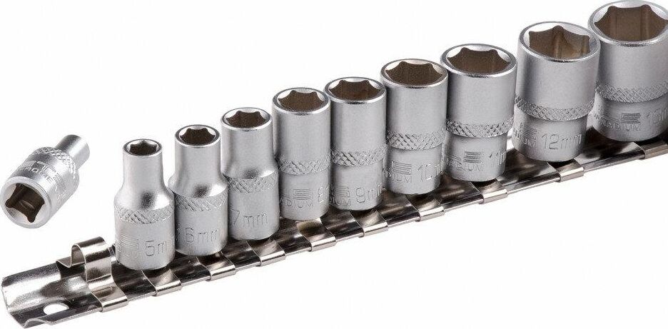 Набор 6-гранных торцевых головок Stels 13602 из стали CrV включает в себя 10 насадок 4-13 мм с присоединительным размером 1/4 дюйма. Он пригодится для ремонта крупногабаритной техники и обслуживания авто. Торцевые головки выдерживают высокие нагрузки, поэтому подходят для профессионального применения.ПреимуществаВысокий ресурс — корпус головок изготовлен из прочной хромованадиевой стали.Защита от разрушения — матовое хромоникелевое покрытие предохраняет головки от коррозии.Удобное хранение — насадки поставляются с металлической планкой-держателем.