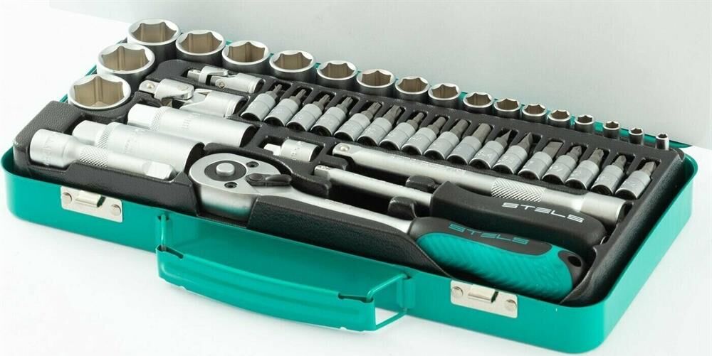 Набор торцевых головок с трещоткой Stels 13575, с присоединительным размером 1/4 и 3/8 дюйма, включает в себя 44 предмета. Он станет незаменимым помощником для специалистов СТО и автолюбителей, пригодится в гараже, поездке, а также дома и на даче.ПреимуществаУдобная работа в труднодоступных местах — трещотка с 72 зубьями позволяет вращать крепеж плавно и мягко.Прочность — инструменты выполнены из термически обработанной инструментальной стали.Встроенный механизм сброса — снятие и установка насадки занимает несколько секунд.Металлические фиксаторы — насадки крепко держатся и не слетают во время работы.Комфортная работа — эргономичная двухкомпонентная рукоятка не выскальзывает из ладони.Удобное хранение и транспортировка — набор поставляется в надежном металлическом кейсе с ложементом.Высокое качество — инструменты изготовлены под строгим технологическим контролем.
