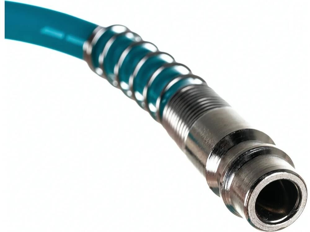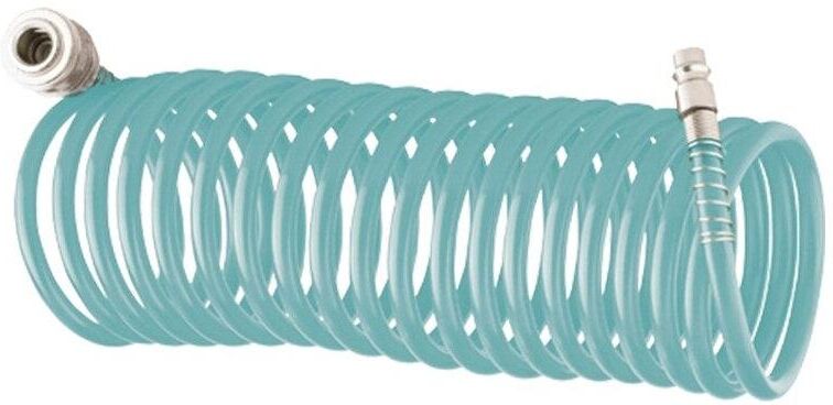 Профессиональный полиуретановый спиральный шланг Stels 57009 из сырья BASF, длиной 15 м, с быстросъемными соединениями, предназначен для подключения пневматического оборудования. Благодаря увеличенной толщине рукав выдерживает давление до 24 бар, поэтому подходит для мощного компрессорного оборудования. Используется в строительстве и на производственных предприятиях.ПреимуществаДолговечность — рукав изготовлен из полиуретана, сочетающего легкость, прочность и устойчивость к перепадам температур, и выдерживает интенсивное применение.Удобная работа — соединения типа «рапид» позволяют быстро отключать шланг от компрессора и менять пневмоинструменты.Продуманная форма — шланг в виде спирали не мешает работе, а после ее окончания возвращается в исходное состояние.Защита от разрушения — на штуцер и муфту нанесено антикоррозийное покрытие.Длина 15 м — можно работать на значительном удалении от компрессора.