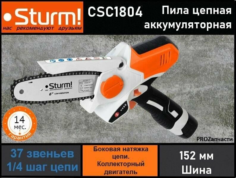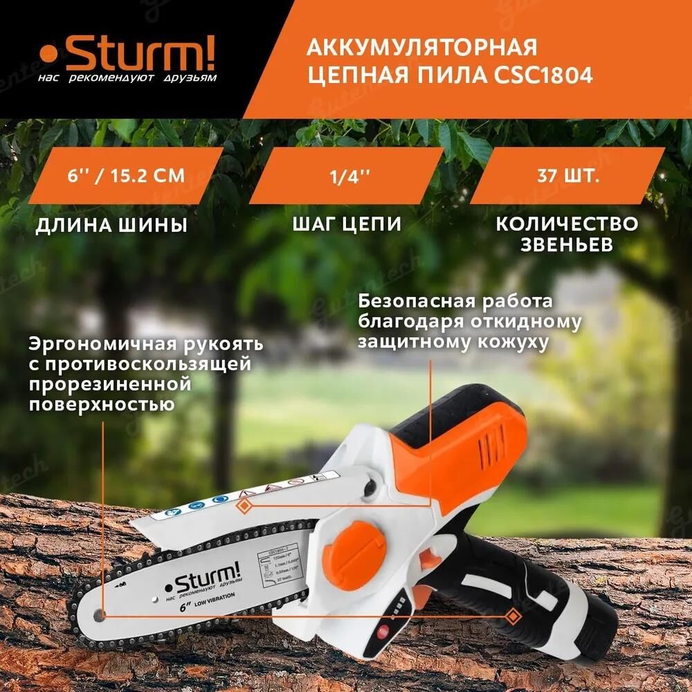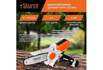 STURM! Цепная пила Sturm CSC1804 аккум. дл.шины:6" (15.2cm) ЗУ