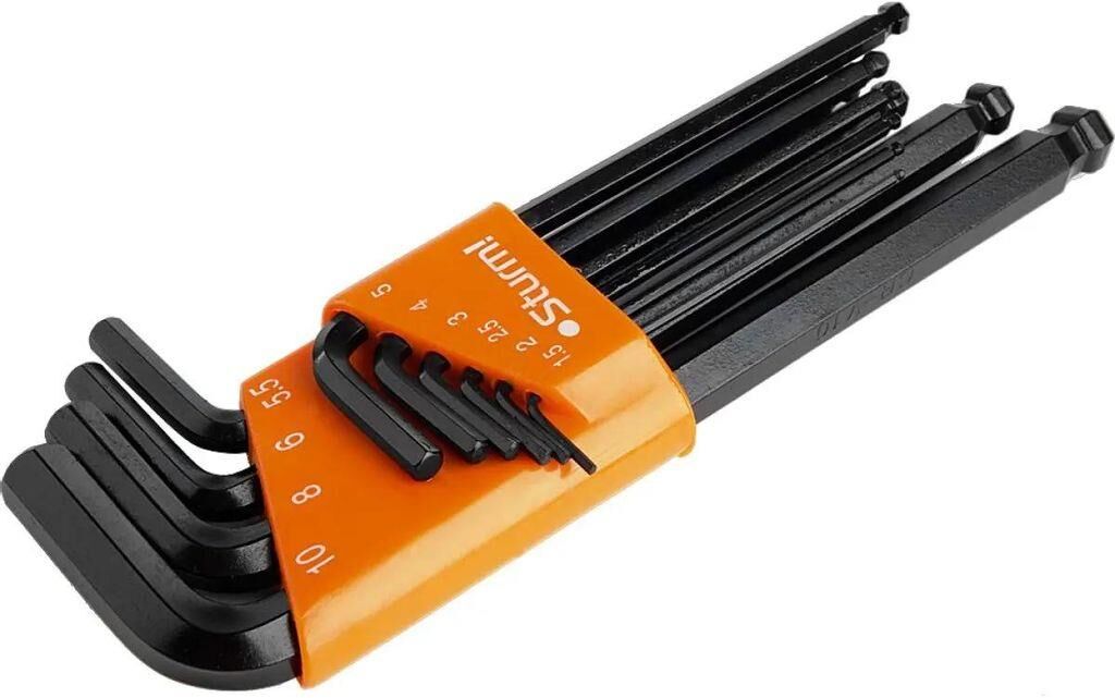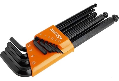 Модель: 1045-04-10Bx10 Описание: Набор шестигранных ключей Cr-V с шаром 10 шт. 1,5-10 мм. Sturm 1045-04-10Bx10 используются при серийной работе с крепежом. Наличие шарового наконечника значительно упрощает вхождение инструмента в паз. Комплект поставляется в специальном держателе. Количество предметов: 10 предметов Бренд: STURM! PartNumber/Артикул Производителя: 1045-04-10BX10 Страна производства: Китай Габариты упаковки (ед) ДхШхВ: 0.11x0.24x0.03 м Вес упаковки (ед): 1.042 кг Объем упаковки (ед): 0.000792 м3 Тип: Набор ключей Максимальный размер ключа: 10 мм Шестигранные ключи, список: 1.5, 2, 2.5, 3, 4, 5, 5.5, 6, 8, 10 мм Система измерения: метрическая Форма ключа : Г-образный Особенности ключа: с шаровым окончанием Минимальный размер ключа: 1.5 мм Размеры ключей в наборе: 1.5, 10, 2, 2.5, 3, 4, 5, 5.5, 6, 8 мм