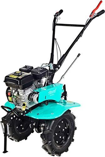 Мотоблок Sturm! GK7210CI является многофункциональным изделием и предназначен для выполнения различных работ на приусадебных участках, в садах и огородах индивидуального пользования. Он легко справится с различными задачами, включая пахоту, культивацию и окучивание почвы. Мотоблок удобен и прост в эксплуатации. Работа на мотоблоке не требует специальной подготовки, но следует иметь в виду, что при работе с каждым навесным оборудованием необходимы определенные навыки. Данная модель снабжена четырехтактным одноцилиндровым бензиновым мотором с воздушным охлаждением. мощностью 7 л.с. Рабочий объем двигателя 212 см3. Топливный бак рассчитан на 3,6 литра бензина. Запуск производится от ручного стартера. В оснащение мотоблока входит трансмиссия на основе трехступенчатого редуктора (2 ступени переднего хода и одна заднего) с реверсом, пара устойчивых ведущих колес, удобная система управления (рычаги и тумблеры непосредственно на руле). Есть набор устанавливаемых фрез. Ведущие колеса мотоблока – это пара стальных диск