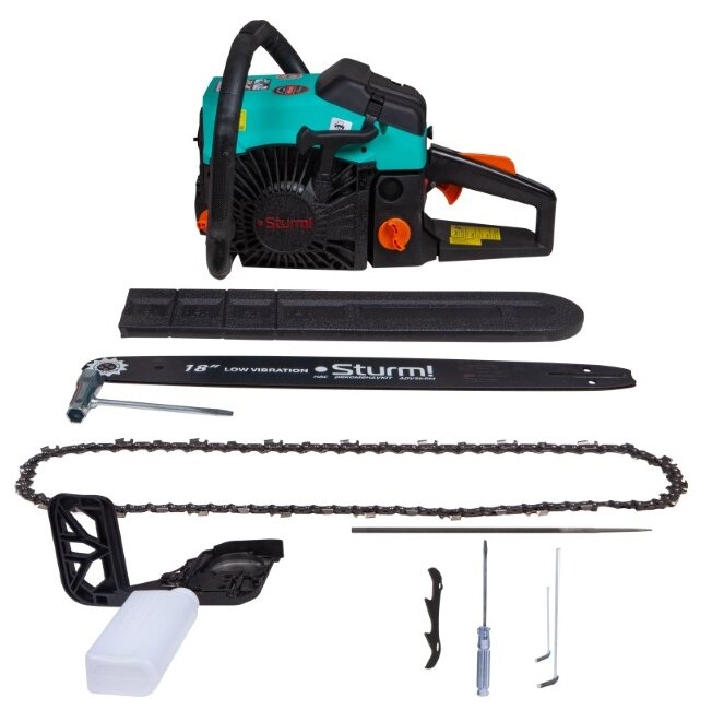 Объем масляного бака (л) 0.26, Длина шины (см) 45.5, Количество звеньев цепи 72, Шаг цепи (дюйм) 0.325, Свеча зажигания L7RTC, M14*1,25, резистор, шестигранник 19 мм, Масса нетто (в собранном, рабочем состоянии, но без аксессуаров) (кг) 5,2, Габариты в упаковке (мм) 520Х270Х305, Номинальная мощность (кВт) 2.9, Мощность (л.с.) 4, Объем двигателя (куб.см) 52, Объем топливного бака (л) 0,55, Уровень шума (Дб) 114, Вес 7.25 кг.