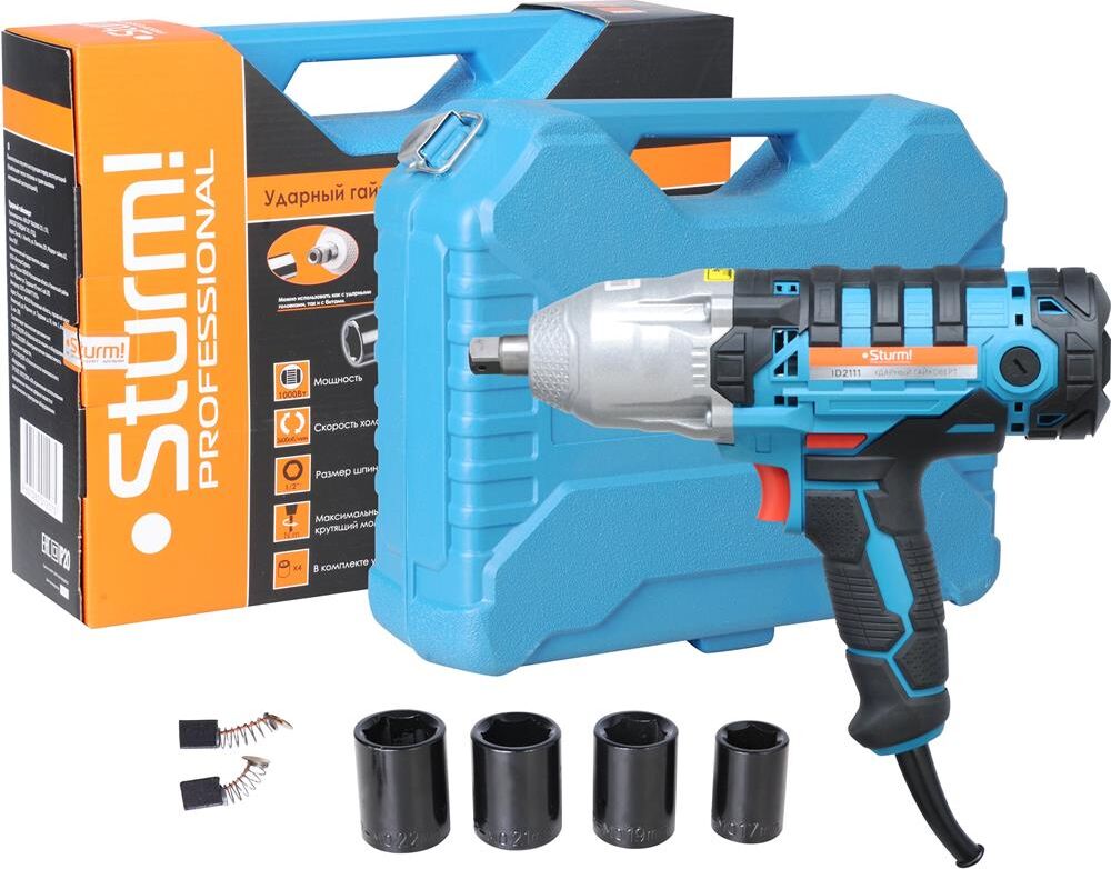 Длина кабеля питания (м) 2. Напряжение питания (В) 220. Вид упаковки Пластиковый кейс. Габариты в упаковке (ДхШхВ, см) 35,5x27,5x10,5. Максимальная мощность (Вт) 1 000. Комплектация Ударные головки (4шт: 17, 19, 21, 22 мм). Дополнительные угольные щетки (комплект, 2шт). Реверс Да. Количество скоростей 1. Максимальный крутящий момент (Нм) 380.