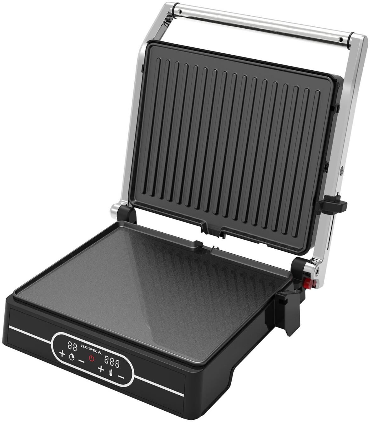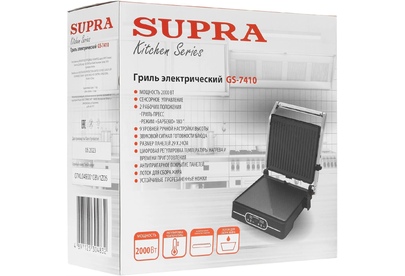 мощностью 2000 Вт, сенсорное управление, гриль-пресс, режим "барбекю" (180 градусов), 9 уровней мощности, съемные панели, размер панелей 29х24 см, контейнер для сбора жира
