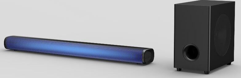 2.1-канальная звуковая панель Совместимость с форматами: MP3/WMA/FLAC/WAV Саунд бар с беспроводным сабвуфером Bluetooth HDMI Оптический вход Полнофункциональный пульт ДУ 5-и цветная LED подсветка USB порт Линейный вход Максимальная выходная мощность: 400 Вт + Сабвуфер 500 Вт Выходная мощность RMS: 40 Вт + Сабвуфер 60 Вт Питание: DC 18 В, 2 А