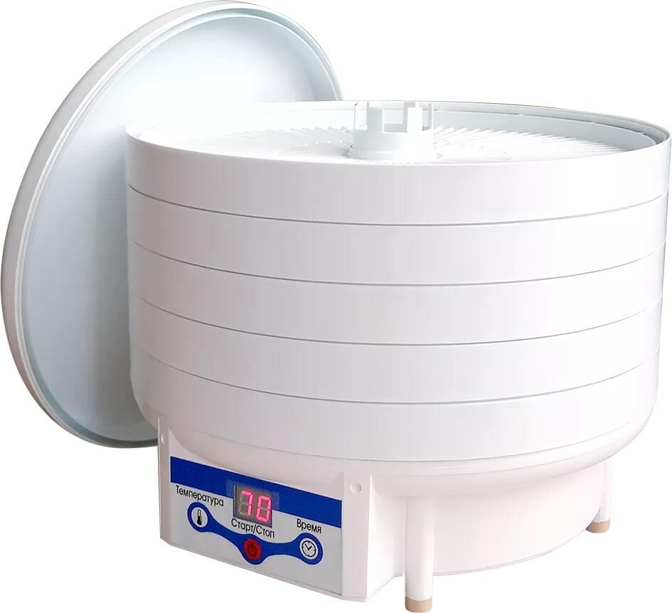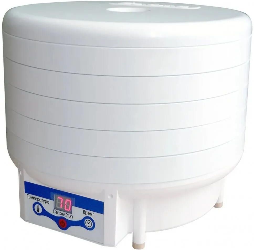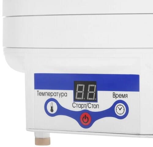 Тип сушки: конвективный * Вид сушилки: вертикальная * Мощность, в ваттах: 500 * Количество секций: 5 * Минимальная температура, в градусах °C: 30 * Максимальная температура, в градусах °C: 70 * Тип управления: электронное * Максимальная загрузка, в килограммах: 4 *