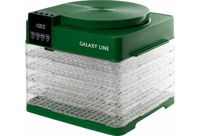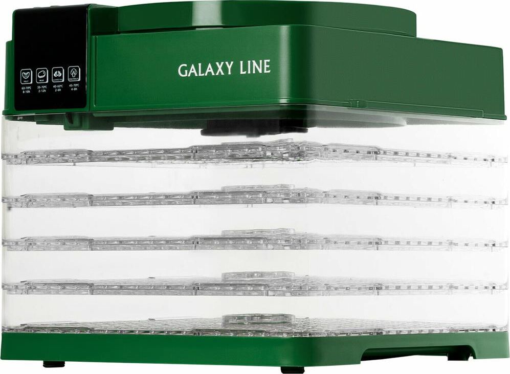 GALAXY LINE GL 2630 ЗЕЛЕНЫЙ Электросушилка для овощей и фруктов , 450 Вт, Регулировка температуры 35-70 °С, Таймер на 48 часов с шагом 30 мин., LED-дисплей, защита от перегрева, 5 прозрачных съемных поддонов, размер поддона 26.5*26.5 см, конвекция, размер прибора 26.8*28*24.5см, книга рецептов, 220-240 В, 50 Гц,
