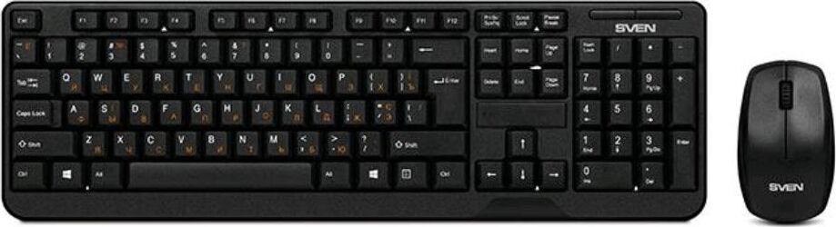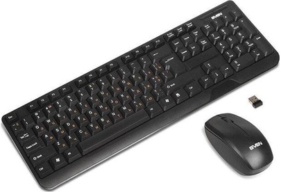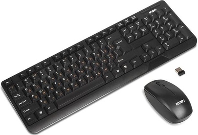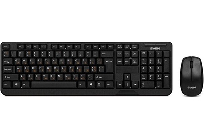 Беспроводной набор (клавиатура+мышь), количество клавиш 104, мышь оптическая, 2 + 1 (колесо прокрутки). 1000 dpi, влагоустойчивая конструкция, 2,4 ГГц USB-наноприемник, дальность действия комплекта – до 10 метров.