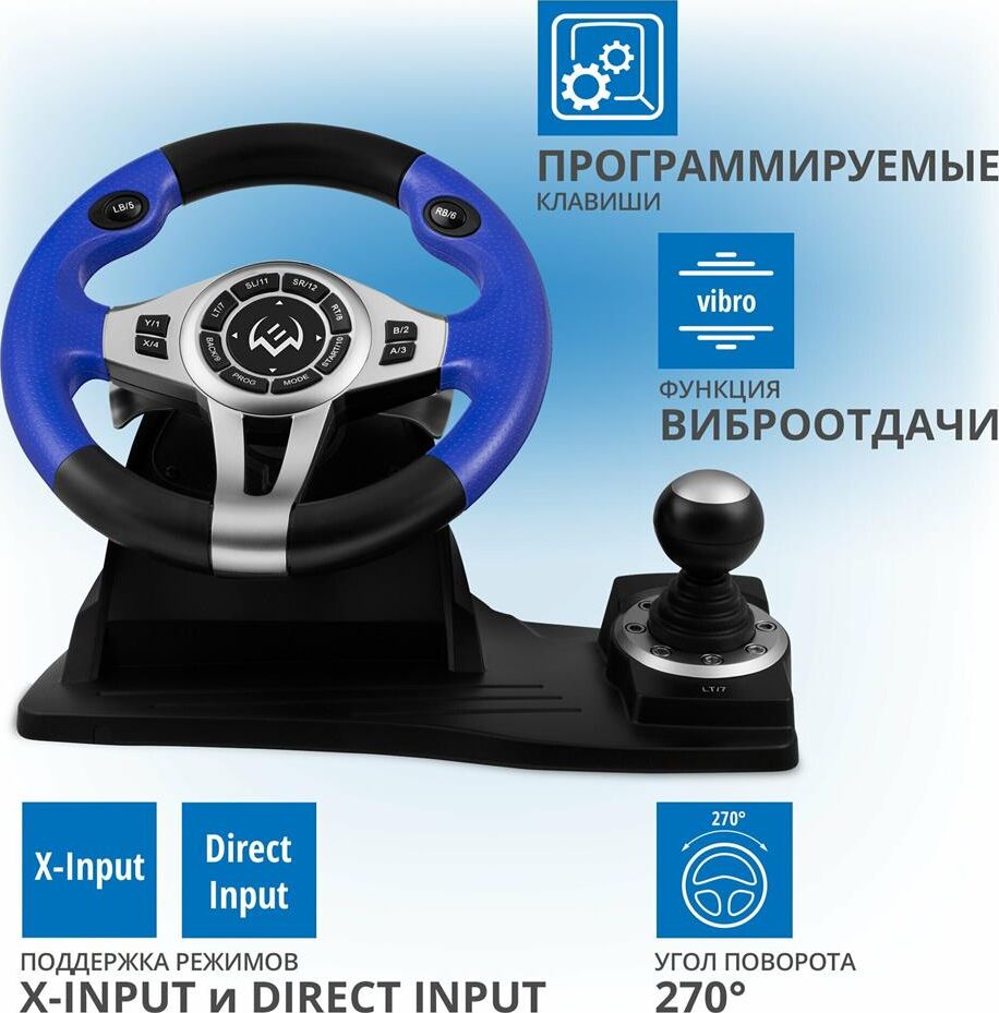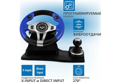 игровой руль, Поддержка Windows XP/Vista/7/8/10/PS3/X-Input, Интерфейс подключения USB, Технология связи проводная, Оси и джойстики 2 оси, 8-позиционный джойстик D-Pad, рычаг переключения передач «Tiptronic», Количество кнопок, шт. 12, Функция виброотдачи есть, Диаметр руля 10" (260 мм), Угол поворота, градусов 270