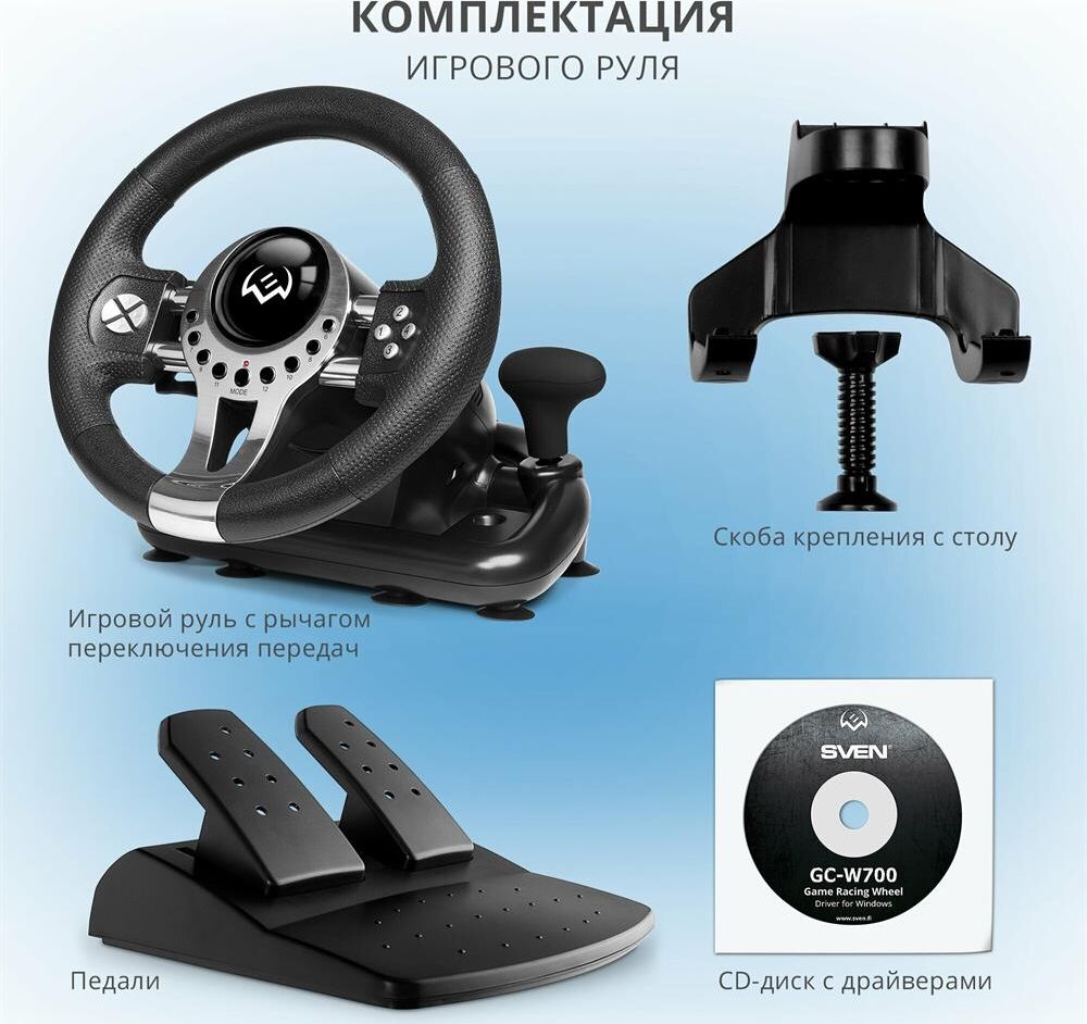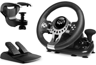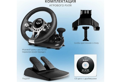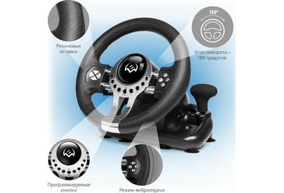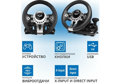 игровой руль, Поддержка Windows XP/Vista/7/8/10, Интерфейс подключения USB, Технология связи проводная, режим работы цифровой и аналоговый, Оси и джойстики 2 оси, 8-позиционный джойстик, рычаг переключения передач «Tiptronic», Количество кнопок, шт. 12, Функция виброотдачи есть, Диаметр руля 10" (254 мм), Угол поворота, градусов 180
