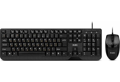 Проводной набор (клавиатура+мышь), количество клавиш 104, клавиши быстрого доступа - 12, влагоустойчивая конструкция, мышь оптическая, 2 + 1 (колесо прокрутки), 800 dpi.