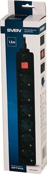 SVEN OPTIMA 1,8 м (6 розеток с защитными шторками, черный, цветная коробка)