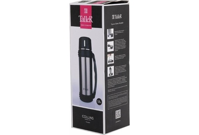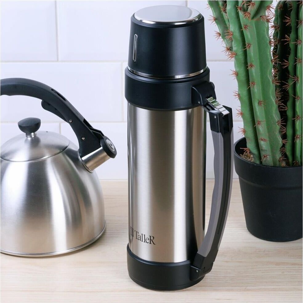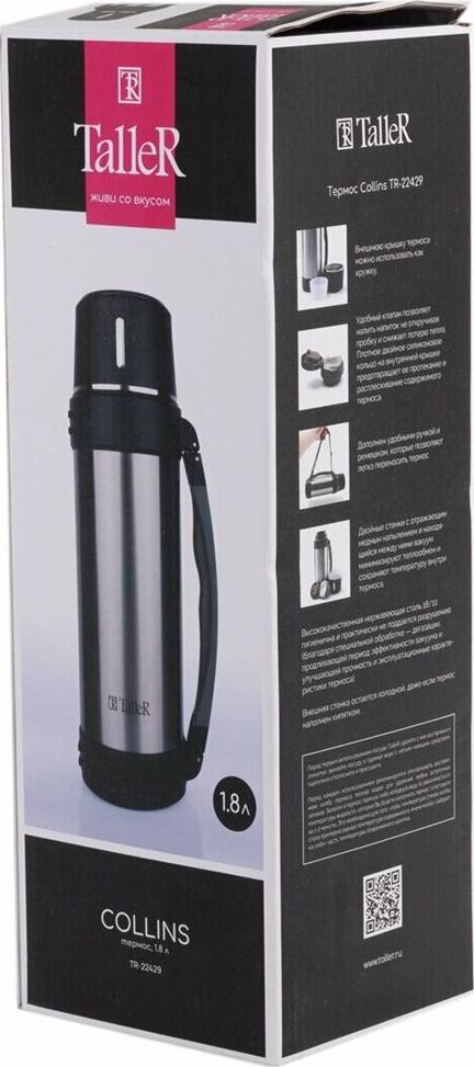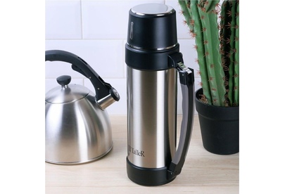 Термос стальной Колинз 1,8 л. Матовое покрытие. - Кнопка-клапан для налива, - крышка-стаканчик -удобная ручка для переноски • Высококачественная нержавеющая сталь 18/10, пищевой пластик • Высота (включая внешнюю крышку): 34,5 см • Диаметр термо