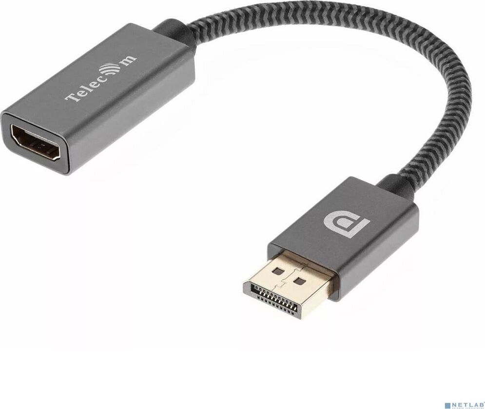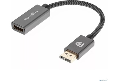 [Переходник] Telecom Кабель-переходник DP --> HDMI-F 0.2m , серый металлик, оплетка, 4K@60Hz [7958820049156]