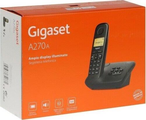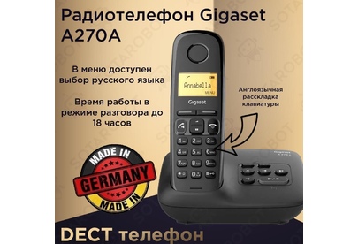 Радиотелефон DECT Gigaset A270A с автоответчиком Соотношение цены и качества: в бесшнуровом дект Gigaset A270 есть все, что нужно беспроводному домашнему телефону. Вы ищете новый, простой в использовании стационарный телефон, но не хотите тратить слишком много? Тогда домашняя трубка Gigaset A270 с функцией громкой связи и высоким качеством «сделано в Германии» станет идеальным ответом на ваш звонок.