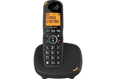 Стильный радиотелефон DECT – teXet TX-D8905A отлично впишется в офисный интерьер. Модель имеет световые индикаторы на трубке и базе, сигнализирующие о входящем звонке. Выпускается в двух цветовых решениях – Черный и Белый. Устройство обладает всеми основными функциями DECT-телефона – поддержка функций Caller-ID и АОН, память на входящие, исходящие номера, настройка даты и времени и будильник. Основной особенностью модели является наличие кнопки экстренной блокировки звонка и занесения в чёрный список, так же VIP-режим, при котором на телефон могут дозвониться только номера из доверенного списка контактов. Клавиатура выполнена из плотной резины с большими клавишами и дополнительными программируемыми кнопками быстрого набора. Дальность действия сигнала в помещении составляет 50 м, и до 300 м на открытой местности. Устройство работает как в тональном, так и импульсном режимах, а к базе можно подключить до 5 трубок. В комплекте идут сетевой кабель 2,5 м, 2 аккумуляторные многоразовые батарейки объёмом 400 мА*ч, ч
