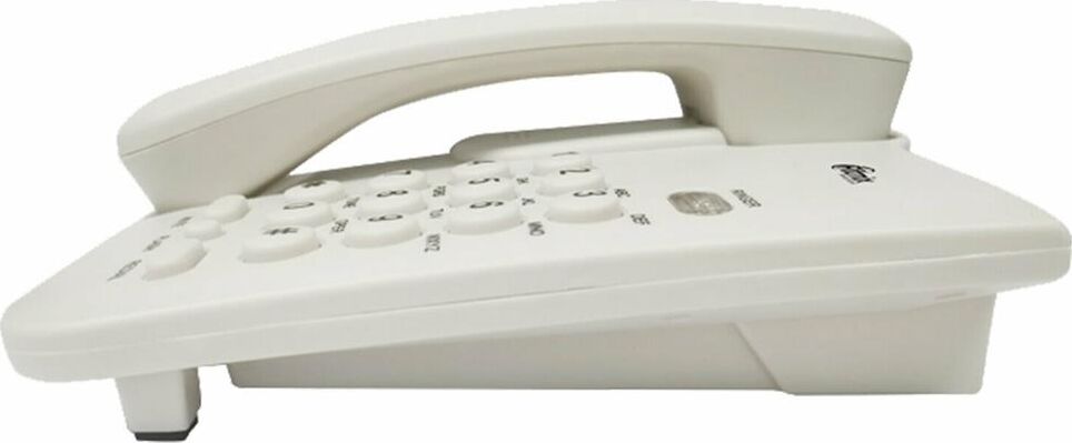 Проводной базовый телефон без дисплея. Сброс/ Повтор номера/Отключение микрофона. Переключение Импульсного /Тонового набора номера. Блокировка набора номера. Регулировка громкости звонка. Светодиодная индикация подключения к линии. Настольное и настенное крепление.