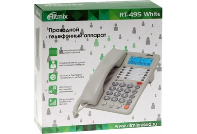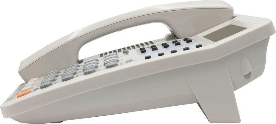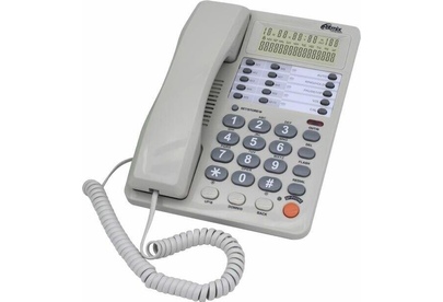 Проводной телефон с дисплеем. Совместимость с FSK/DTMF/ETSI с автоматическим определением, 16-разрядный ЖК-дисплей, 59 входящих и 16 исходящих звонков памяти, 10 кнопок для быстрого однокнопочного набора. Возможность подключения к мини АТС, перевод звонка. Функция повторного набора последнего номера. Будильник. Функция мелодии во время удержания звонка. Функция набора номера и разговора по громкой связи. Функция подсветки ЖК-дисплея. Пауза/сброс. Функция калькулятора. Функция отключения микрофона. Регулировка громкости динамика. Регулировка громкости звонка. Настенное / настольное размещение