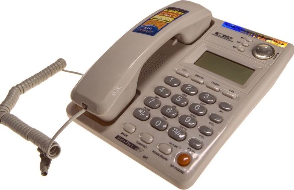 Повтор последнего набранного номера,ЖК-дисплей,Отображение реального времени,Счетчик длительности разговора,Удержание линии,Регулятор громкости звонка.
