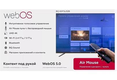 65", 165,10 см, UHD(3840*2160), 300 cd/m2 ±10%, 5000:1, DVB-C/T/T2/S2, 3 HDMI, 2 USB, звук 2х8 Вт, Smart TV, тонкие рамки, ОС Web OS