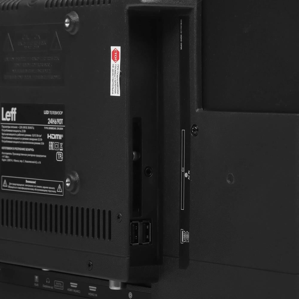 24" (60см) SALUT SMART TV, DLED, HDready (1366*768), DVB-T2/C, Dolby AC-3; 16:9, яркость 200 кд/м2, контрасность 3000:1, 16.7 млн. цветов, аудио 2х3 Вт; 2xHDMI, 2хUSB, MINI AV IN, ANT, COAXIAL, CI+ slot, выход под наушники, LAN(RJ-45); Wi-Fi, Bluetooth; USB-медиаплеер(PVR), телетекст, родительский контроль, Timeshift; VESA 100х100; цвет: чёрный