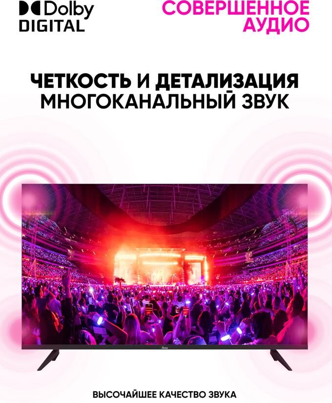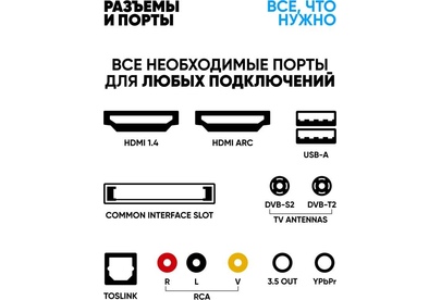 Диагональ дисплея 31.5" (80 см) Разрешение 1366 x 768 Тип экрана Безрамочный Яркость (кд/м2) 250 Контраст 5000:01:00 Время отклика (мс) 7 Формат 16:9 Углы обзора (верт. х гориз.) 176 x 176 Поверхность Глянцевая Стандарт вещания DVB-T;DVB-T2;DVB-C;Аналоговый; Системы звука BG;DK;I;L; Система цветности PAL;SECAM; Количество каналов 99 аналоговых, 700 цифровых HDMI 2 шт.;(1.4); HDMI функции CEC;ARC;HDCP (1.4); Встроенный порт USB 2 шт.;(2.0); CI порт CI+ (1.4) Выходы наушники (3,5мм);оптический аудиовыход (Toslink); Входы композитный видеовход (RCA);стерео аудиовход (RCA);компонентный YPbPr (3,5мм); Питание ~110-240 В Настенное крепление VESA 100 x 100 Мощность динамиков 2x8 Вт Цвет Черный Размер 713 х 469 х 200 с подставкой, 713 х 420 х 67 без подставки