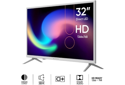 Диагональ: 32 дюйм. Разрешение: 1366x768 HD Ready. Игровой ТВ: нет. Поддержка HDR: нет. Тип светодиодной подсветки: Direct LED. Настенное крепление (VESA): 100x100 мм. Цвет: черный. Телетекст: да. Технологии приема сигнала: DVB-T2; DVB-C; DVB-S; DVB-S2. Приём DVB-T2: да. Приём DVB-C: да. Приём DVB-S: да. Приём DVB-S2: да. Акустическая система: 16 Вт (2x8 Вт). Интерфейсы: HDMI, USB 2.0 тип A, RCA аудио, RCA видео. Беспроводные интерфейсы: нет. Особенности: цифровое шумоподавление. Пульт ДУ: ИК. Количество интерфейсов USB: 2 шт. Количество входов HDMI: 3 шт. Версия HDMI: 1.4. Интерфейс Ethernet: нет. Поддержка CI+: да. Выход аудио: коаксиальный. Потребляемая мощность: 56 Вт. Потребляемая мощность в выключенном режиме: 0.5 Вт. Воспроизведение мультимедиа с USB: да. Запись на USB устройство: да.