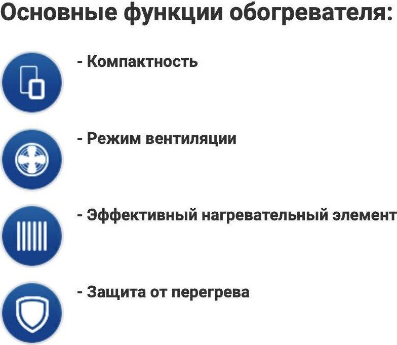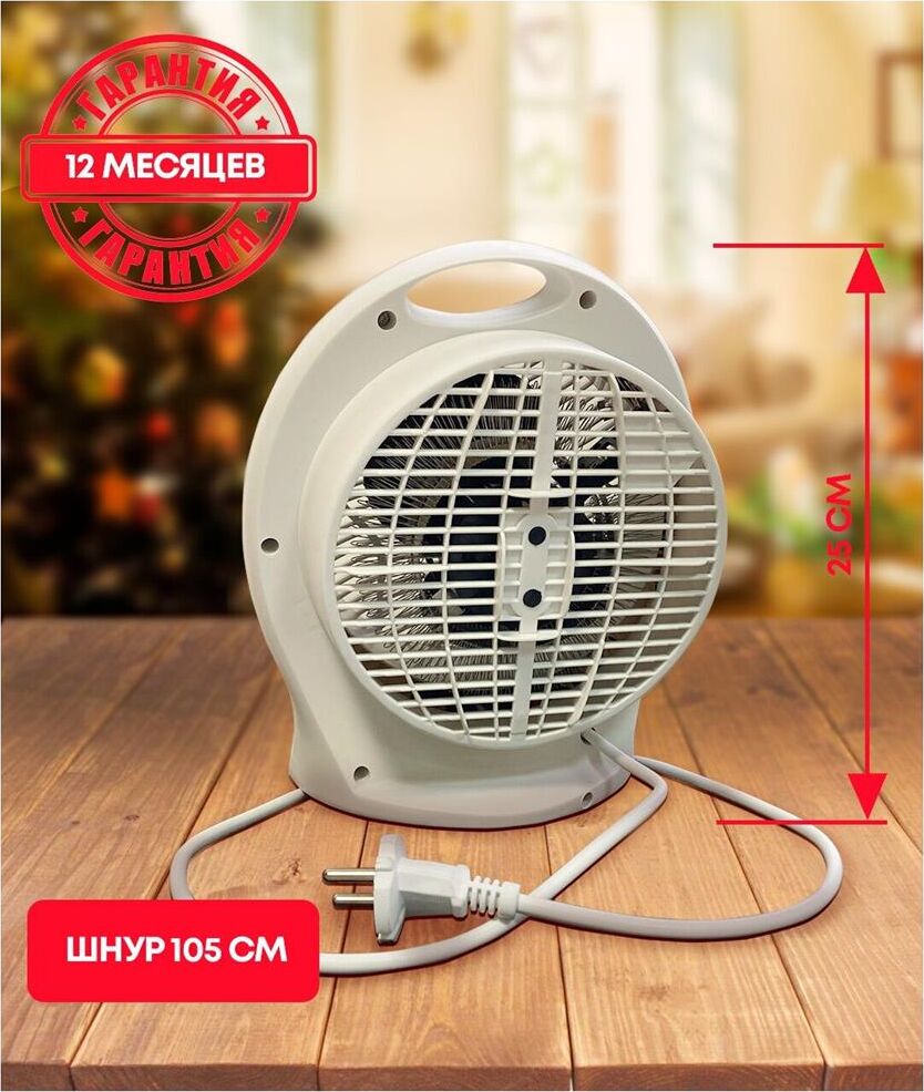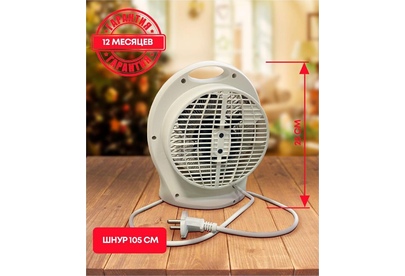 Мощность, Вт 2000 Мощность по ступеням, Вт 1000/2000 Номинальное напряжение, В 220-240 Номинальная частота, Гц 50 Номинальная сила тока, А 8,4 Площадь обогрева, м2 до 20 Класс защиты II Степень защиты IPX0 Длина шнура, м 1 Размер изделия, см 23х21х11 Вес, кг* 0,85. Спиральный нагревательный элемент Настольное вертикальное исполнение 2 режима работы на обогрев Регулируемый термостат Режим обдува Защита от перегрева Индикатор режима работы Компактность Низкий уровень шума