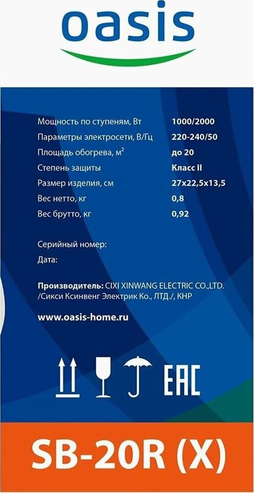 Тепловентилятор OASIS SP-20R