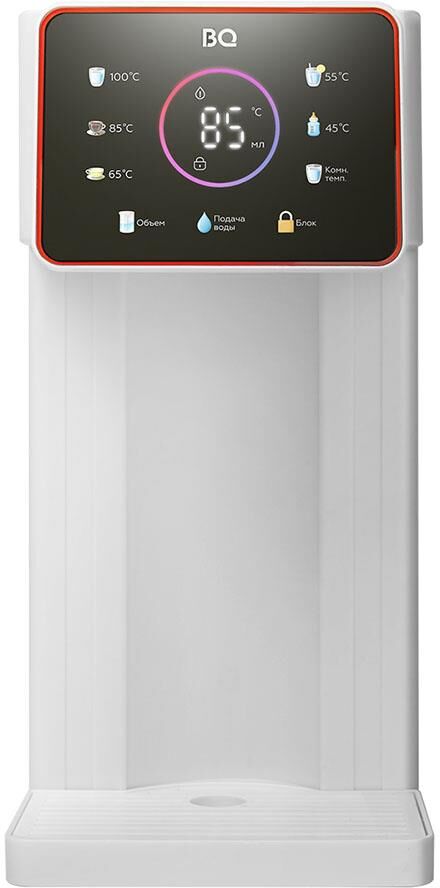 Термопот проточный BQ TP3000, мощность 2000 Вт, объем 3 л, сенсорное управление, 5 температурных режимов (45, 55, 65, 85, 100°C), выбор объема порции: 150, 200, 250, 300, 350, 400, 450, 500 мл, способы подачи воды: электрическая помпа, индикатор уровня воды, блокировка подачи воды, блокировка кнопок, защита от перегрева, дисплей LED, подсветка стакана, съемный резервуар для воды, материал корпуса: пластик, длина электрошнура: 0.9 м, напряжение: 220-240 В, 50-60 Гц, защита от поражения электротоком: класс I