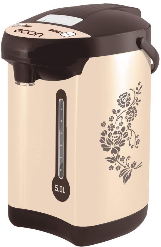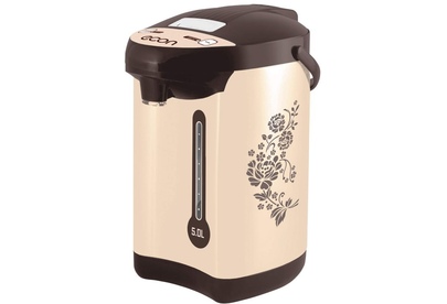 Термопот электрический, Мощность 750Вт, Объем 5 литров, Способ подачи воды - механический, электрический, касанием чашкой, Защита от перегрева, Защита от перепада напряжения, Функция повторного кипячения.