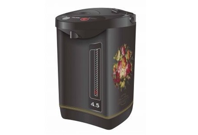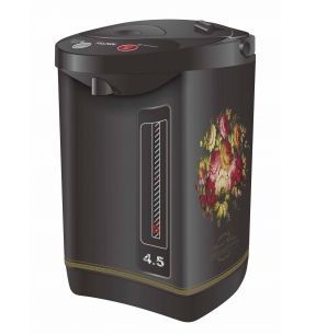 Объем (л): 4,5;Поворот базы на 360 градусов: Повторное кипячение: Способ подачи воды: воздушная помпа, электронасос, с помощью посуды; Функция поддержания температуры: Цвет: чёрный (узор "хохлома");Частота (Гц): 50;Вес брутто (кг): 2,54;Вес нетто (кг): 2,09;Длина сетевого шнура (м): 1,0;Защита мотора от перегрева: Материал бака: нержавеющая сталь;Материал корпуса: металл, пластик;Мощность (Вт): 800 Вт;Нагревательный элемент: скрытый;