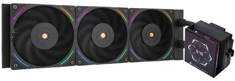 Тип компонента: помпа. Количество вентиляторов: 3. Размер вентилятора: 120. Материал радиатора: алюминий. Тип поставки: Ret. Цвет подсветки: многоцветная. Особенности: 3 pin питание подсветки. Материал основания прилегающего к охлаждаемому устройству: медь. Питание вентилятора от материнской платы: 4-pin. Питание помпы от материнской платы: 4-pin. Потребляемое напряжение вентилятора: 12. Термопаста в комплекте: есть. Габариты упаковки (ед) ДхШхВ: 0.465x0.227x0.145. Вес упаковки (ед): 3.27. Тип подсветки: ARGB. ЖК дисплей: есть. Длина радиатора: 403. Толщина радиатора: 27. Ширина радиатора: 120. Гарантия: 24 мес.. Скорость вращения вентилятора: 2150 об/мин. Скорость вращения помпы: 6400 об/мин. Тип подшипника: S-FDB V2 Bearing. Тепловые трубки: без тепловых трубок. Воздушный поток вентилятора: 69 cfm. Уровень шума вентилятора: 27 дБ. Цвет товара: черный. Особенности системы охлаждения: PWM, индикатор температуры, подсветка. Socket: AM4, AM5, LGA 1150, LGA 1151, LGA 1155, LGA 1156, LGA 1200, LGA 1700, LGA 1851,